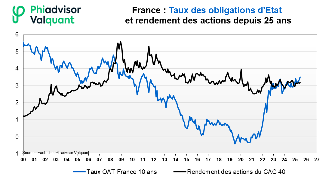 Pour la première fois depuis 2008, le rendement des obligations (taux d'intérêt) dépasse le rendement des actions...