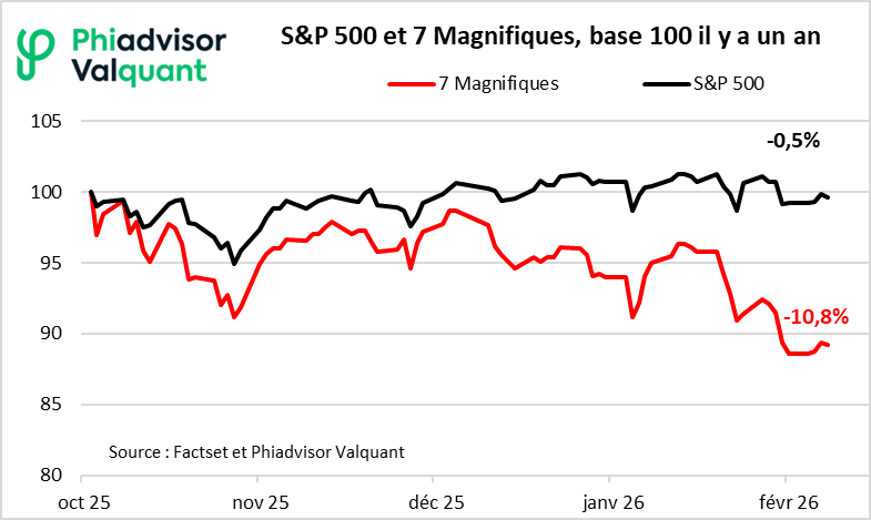 Le cours des 7 magnifiques a baissé de plus de 10% depuis la fin octobre, alors que le S&P 500 est étale.
