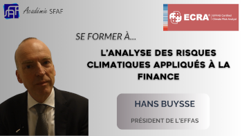 Hans Buysse, président de l'EFFAS, présente la certification ECRA (EFFAS Climate Risk Analyst), conçue par l'EFFAS, l'association européenne des analystes financiers, et proposée en France par l'Académie SFAF.